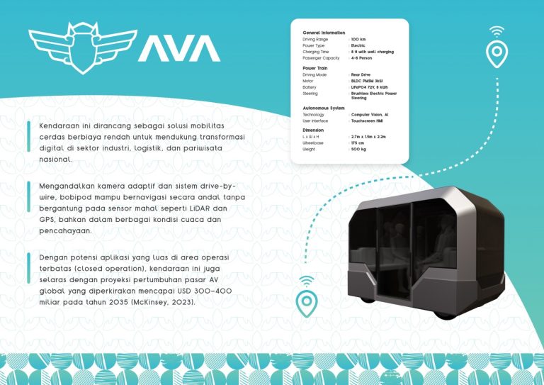 “Target kami jelas: dalam waktu dekat AVA bisa digunakan di kawasan industri dan bandara. Ke depan, kami ingin Indonesia menjadi produsen teknologi kendaraan otonom yang dapat bersaing di pasar global,” ujar Augie.