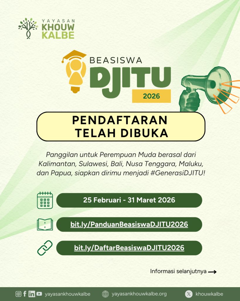 Yayasan Khouw Kalbe mencari perempuan-perempuan tangguh yang siap didukung menjadi pembawa perubahan bagi daerah asalnya. ๐Ÿš€