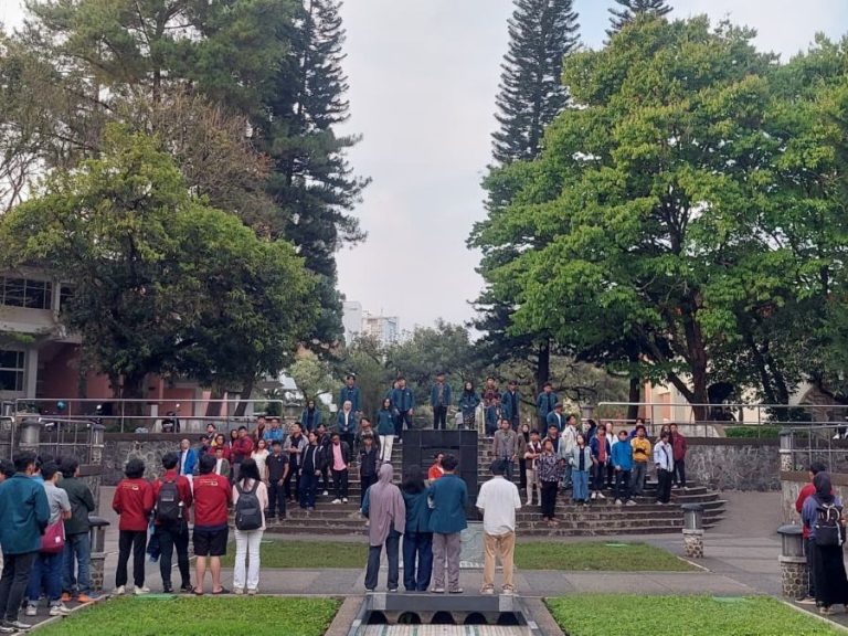 BANDUNG, itb.ac.id – Kabinet Keluarga Mahasiswa ITB menggelar Inaugurasi KM ITB di area Plaza Widya Nusantara, ITB Kampus Ganesha, Jumat (3/10/2025). Kegiatan ini berupa penyampaian keresahan dan harapan bagi Indonesia melalui orasi yang disampaikan stakeholder dan elemen Keluarga Mahasiswa ITB yang meliputi perwakilan fakultas angkatan 2025, Unit Kegiatan Mahasiswa (UKM), Himpunan Mahasiswa Program Studi (HMPS), dan Kabinet Keluarga Mahasiswa.