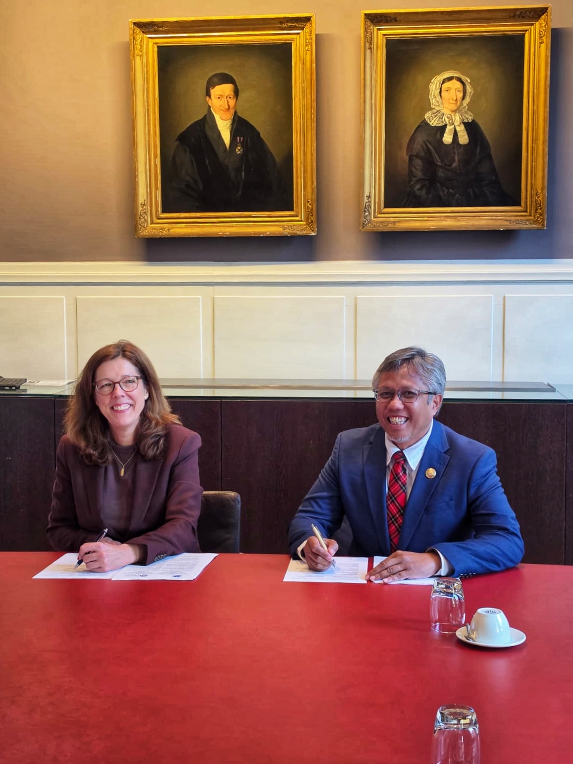 Perjanjian Kerja Sama ditandatangani langsung oleh masing-masing rektor, Prof. Tatacipta Dirgantara dan Prof. Sarah de Rijcke.
