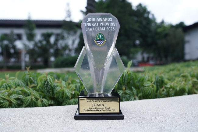 BANDUNG, itb.ac.id – Institut Teknologi Bandung (ITB) meraih juara 1 kategori Anggota Jaringan Dokumentasi dan Informasi Hukum (JDIH) Perguruan Tinggi Terbaik Tahun 2025 di Provinsi Jawa Barat. Selain itu, ITB menjadi juara 2 kategori Anggota JDIH Perguruan Tinggi Dukungan Terbanyak 2025 di Jabar.