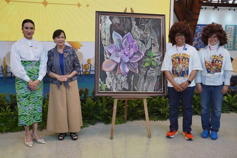 Dalam kesempatan tersebut, Ibunda dari Menteri Pariwisata juga mendonasikan sebuah lukisan berjudul Sukulen, yang terinspirasi dari tanaman sukulen yang tumbuh di batang pohon tua yang kering, yang merupakan sebuah simbol keteguhan hidup di tengah waktu yang terus berjalan.
