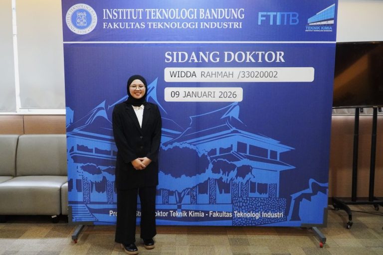 Adapun Sidang Tertutup dari Widda Rahmah dengan judul “Pendekatan Hijau dalam Sintesis Membran Zeolit Cha: Studi Metode Trapped-Gel untuk Proses Carbon Capture” dilaksanakan Jumat (9/1/2026) di Kampus ITB Ganesha. Tim Pembimbing terdiri atas Prof. Ir. I Gede Wenten, M.Sc., Ph.D., Prof. Dr. Ing. Ir. Danu Ariono, dan Dr. Ir. Khoiruddin, S.T., M.T.