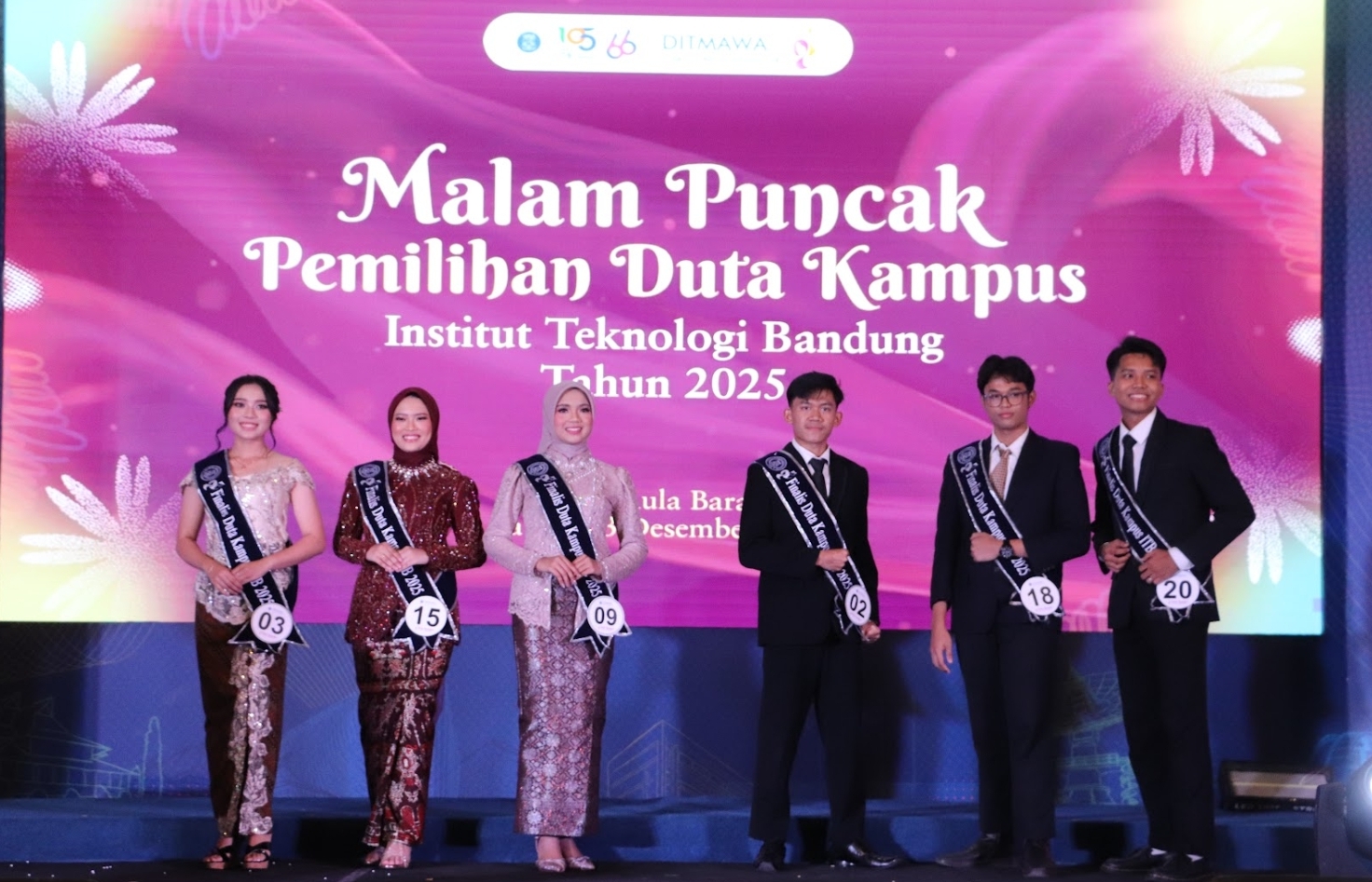 BANDUNG, multikampus.itb.ac.id – Direktorat Kemahasiswaan Institut Teknologi Bandung (Ditmawa ITB) menyelenggarakan Malam Puncak Pemilihan Duta Kampus ITB Tahun 2025, Sabtu (13/12/2025) di Aula Barat, ITB Kampus Ganesha. Acara ini menjadi penutup rangkaian panjang seleksi dan pembinaan mahasiswa terpilih yang dipersiapkan sebagai representasi resmi ITB.
