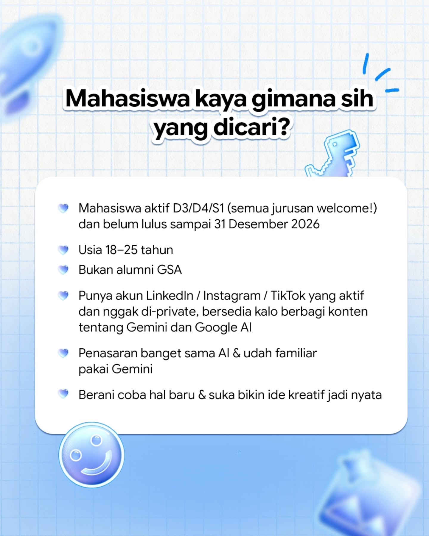 Buat kamu yang suka ngulik AI, berani eksplor hal baru, dan siap jadi changemaker di kampus, ini saatnya buktikan kemampuanmu!