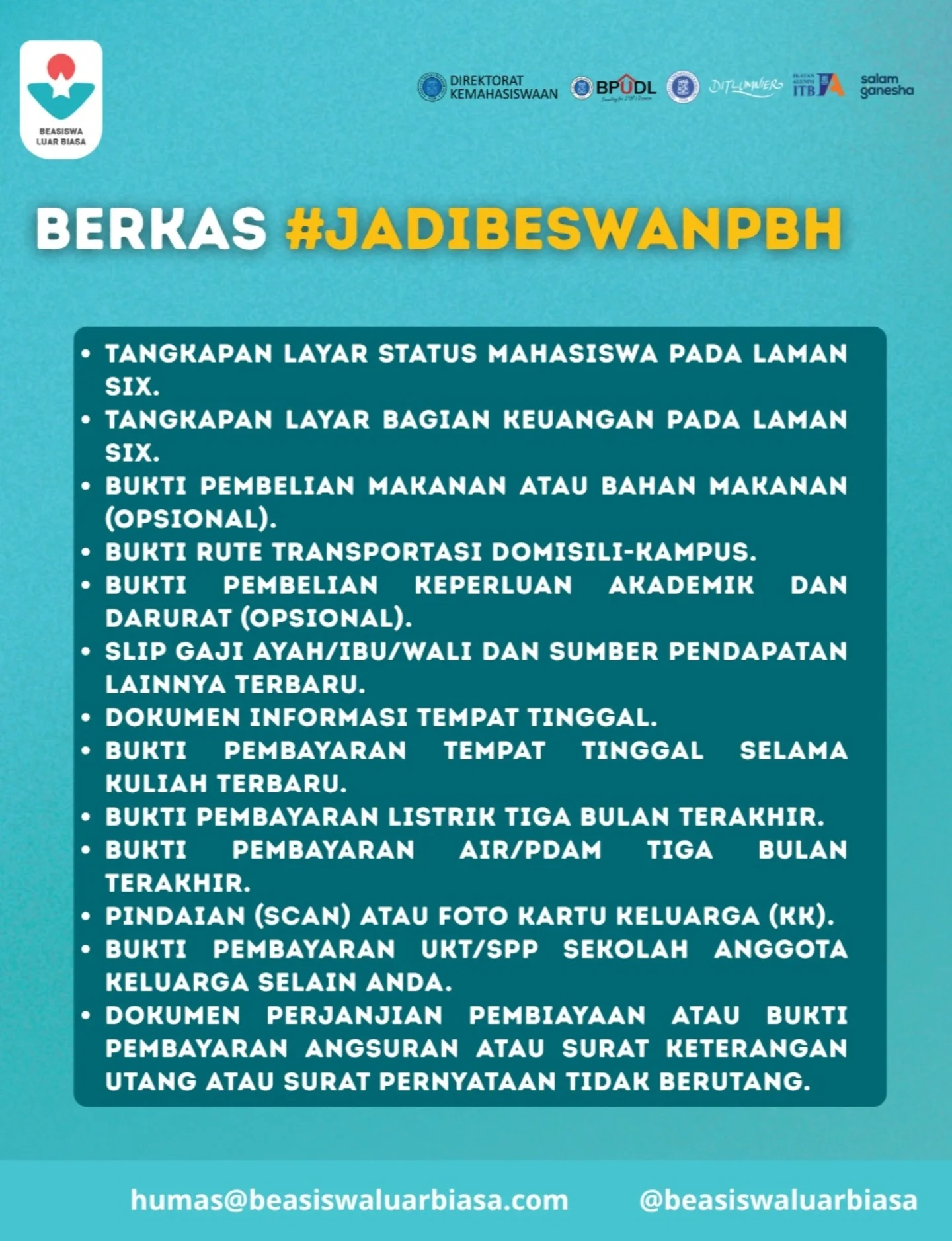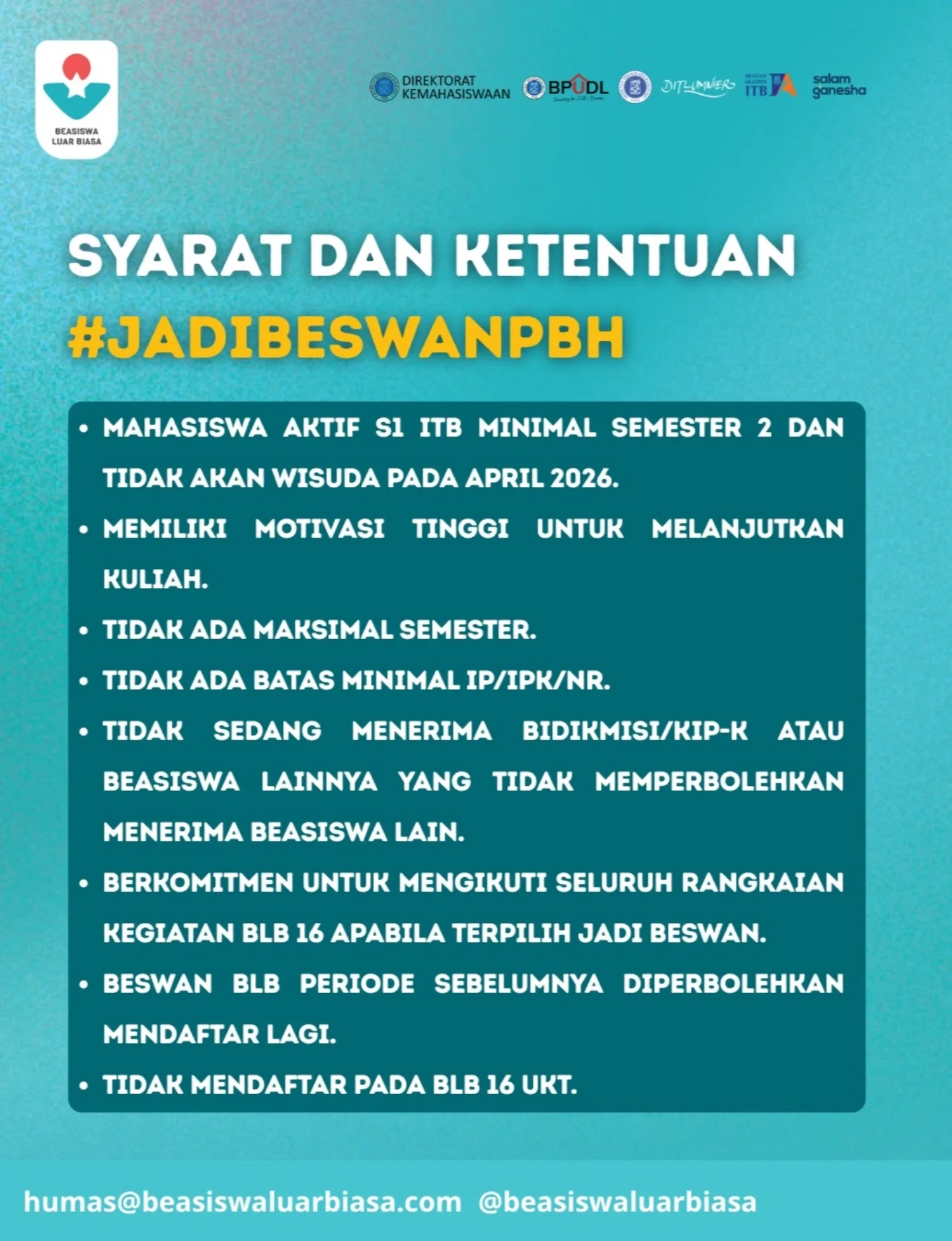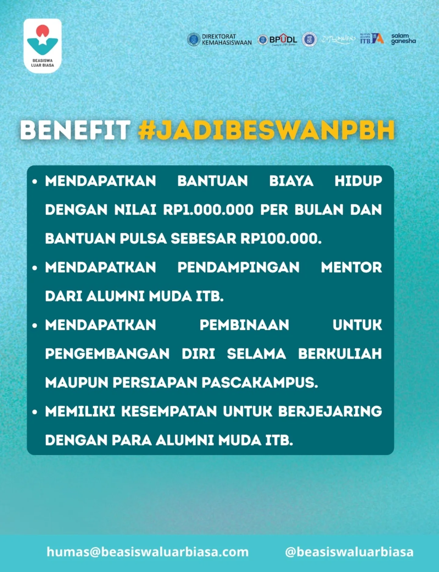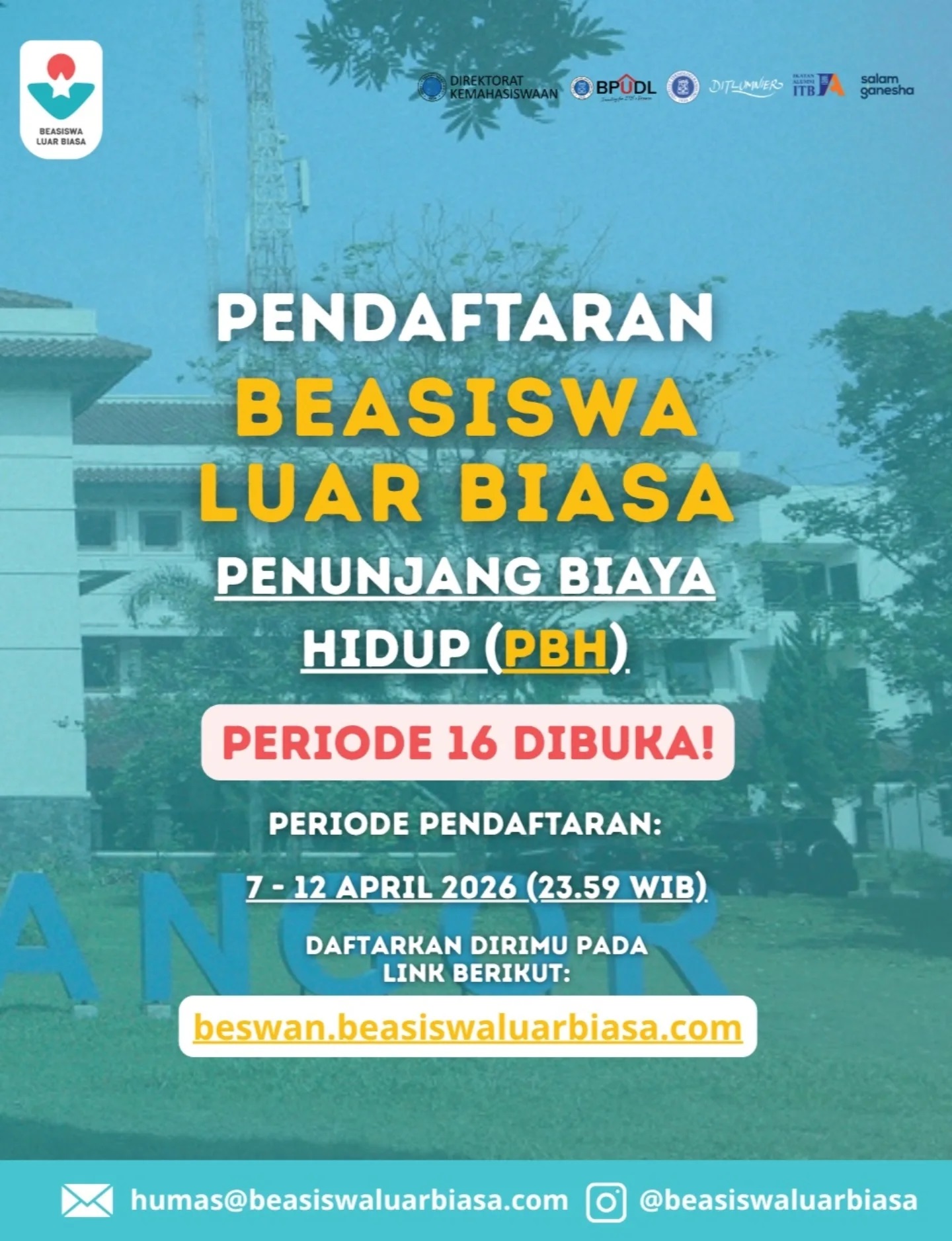 Pendaftaran Beasiswa Luar Biasa Periode 16 PBH️