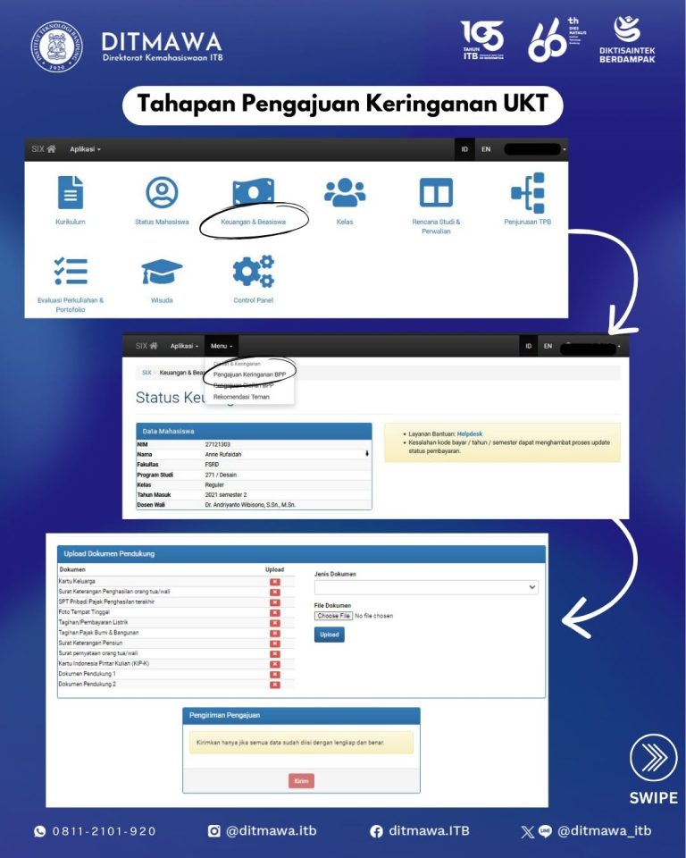 Periode pengajuan keringanan UKT mulai tanggal 13 Januari sampai dengan 21 Januari 2026 melalui akun SIX mahasiswa.